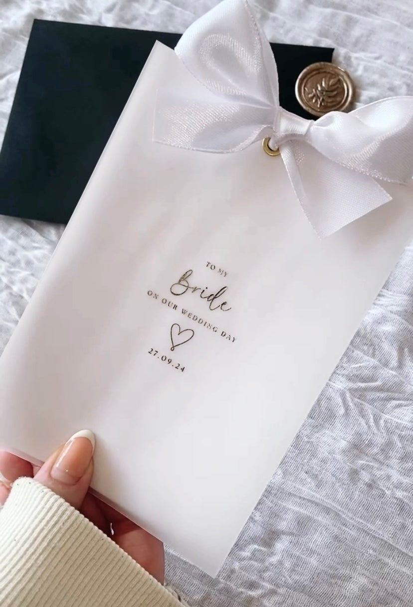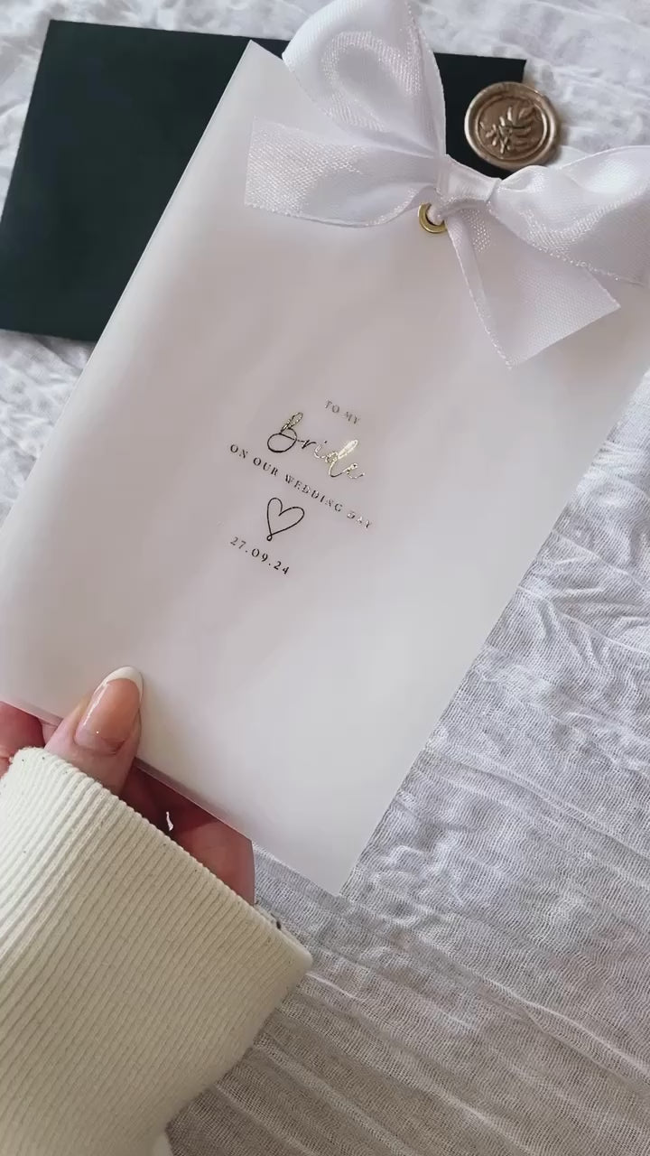 Wedding Day Thank You Card with gold foil detailing and a ribbon bow