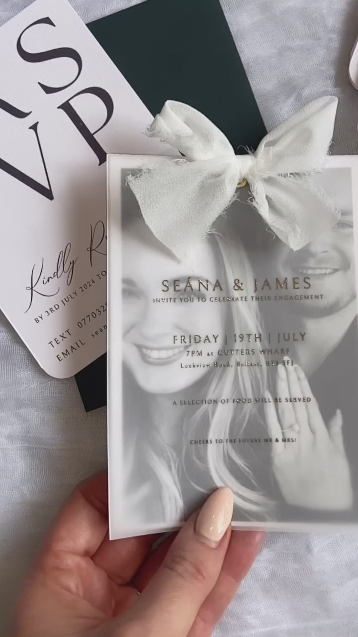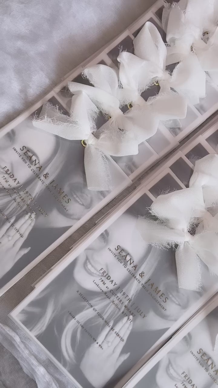 Wedding/ Event Invitation with gold foil detailing and a ribbon bow