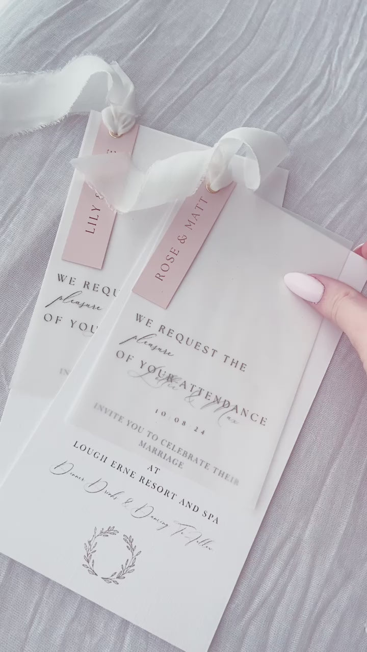 Wedding Invitation with gold foil detailing and a ribbon tie